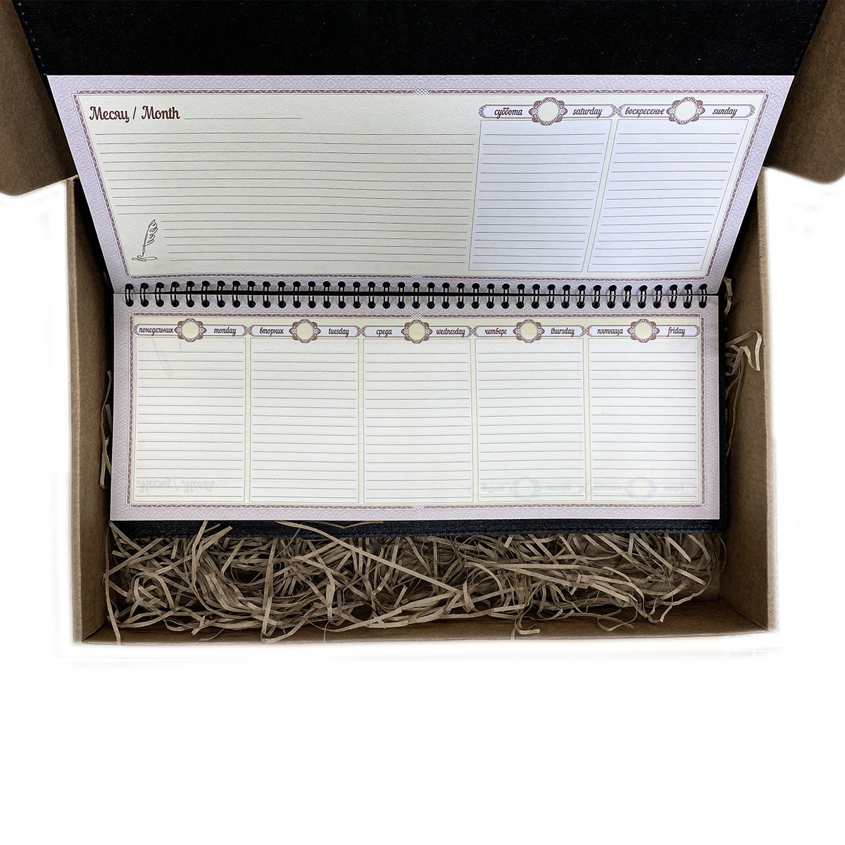 Планинг в обложке из натуральной кожи с оригинальным тиснением. Сменный блок , изготовлен из лощеной бумаги высокого качества. Обложка выполнена из высококачественной натуральной телячей кожи.