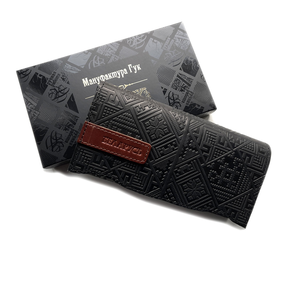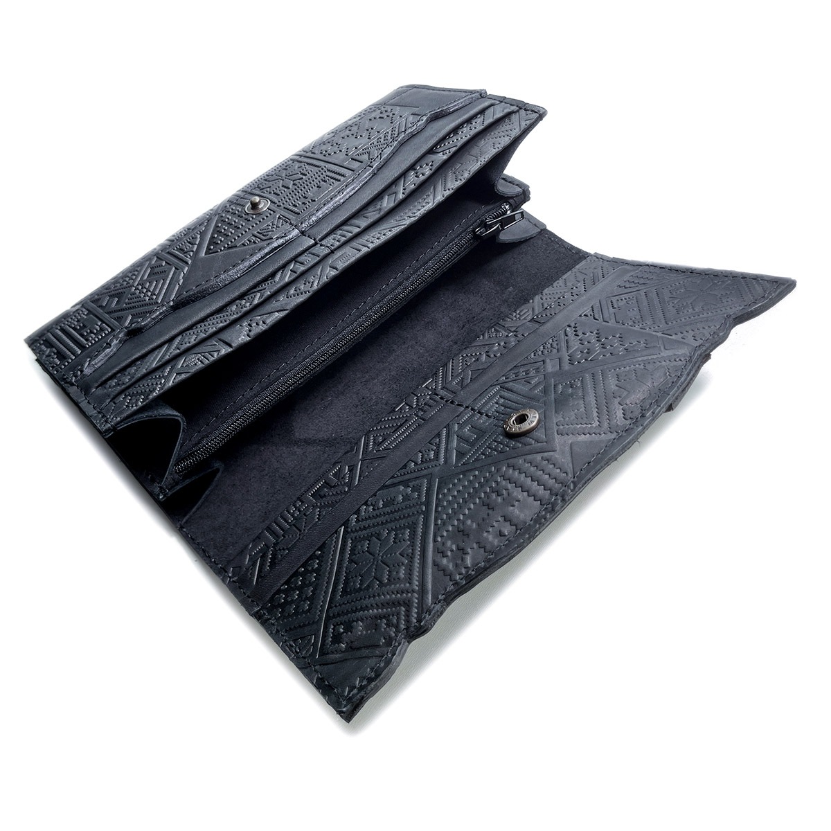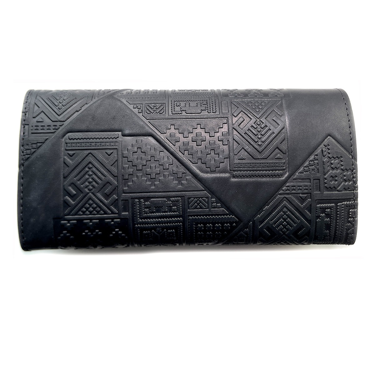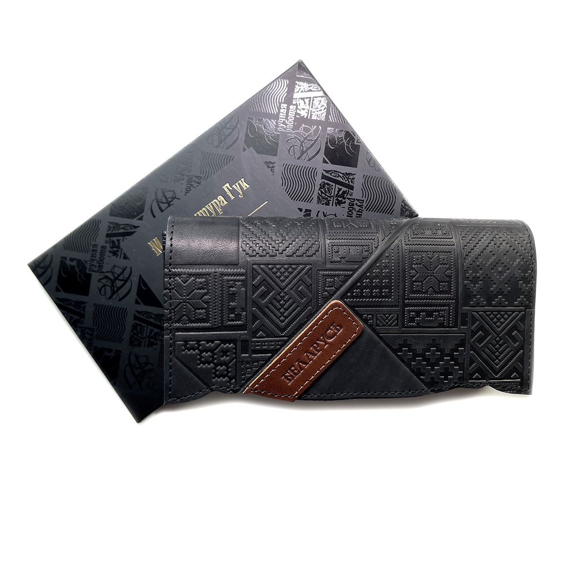 Портмоне большое из натуральной кожи с тиснением. Имеется 12 отдельных карманов для карточек, 3 вместительных отделения для бумажных купюр, а также 1 отделение на молнии, в котором удобно хранить монеты. Закрывается на кнопку.
