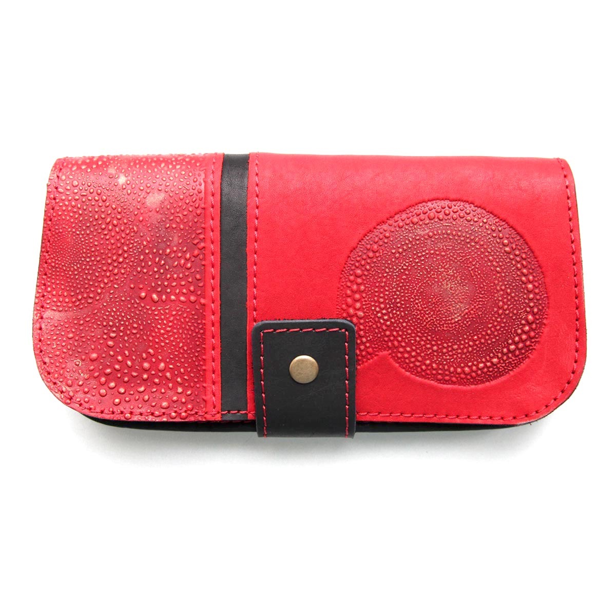 Портмоне большое "SCALE" из натуральной кожи с тиснением. Имеется 3 отдельных карманов для карточек, 3 вместительных отделения для бумажных купюр, а также 1 отделение на молнии, в котором удобно хранить монеты. Закрывается на кнопку.