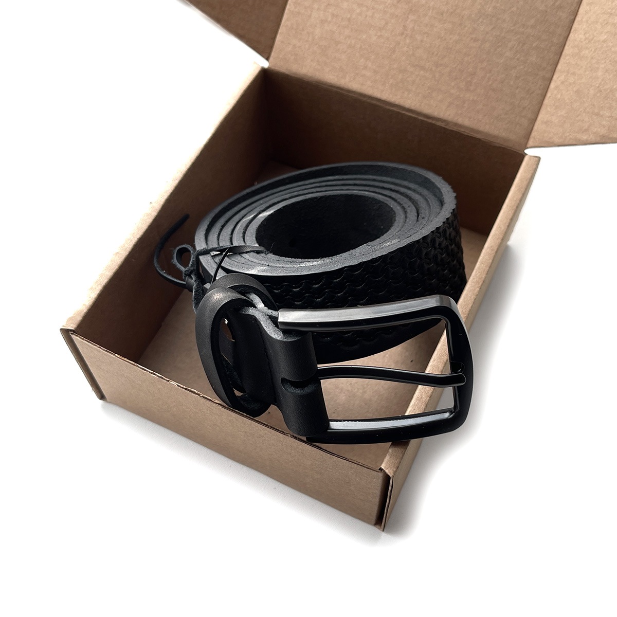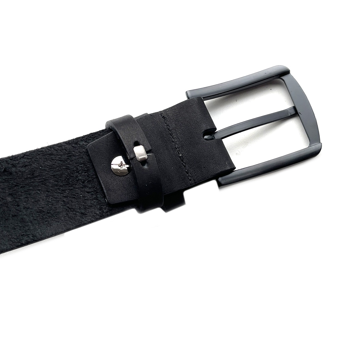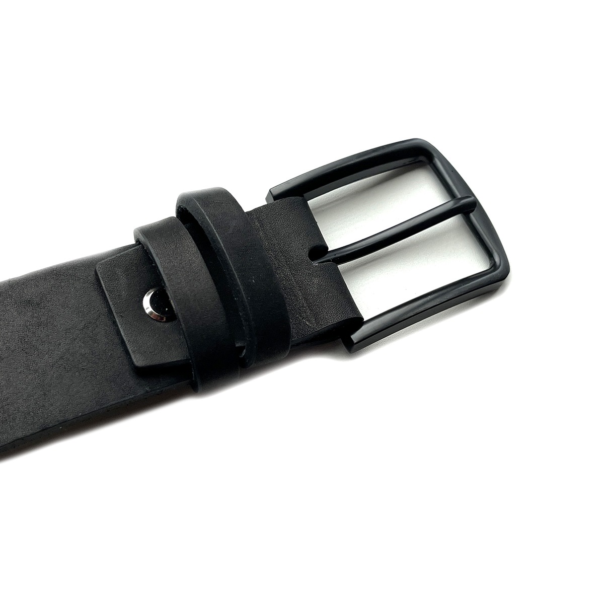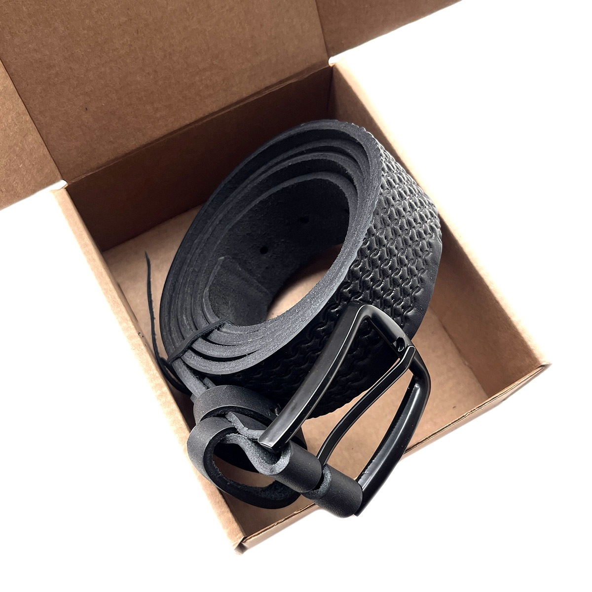 Ремень из натуральной кожи для брюк и джинсов ручной работы. Ремень и пряжка черного цвета, ширина ремня 4 см. Ремень декорирован тиснением. Для изготовления используется натуральная кожа толщиной 3,5-4 миллиметра, в один слой. Длина ремня 130 см, с возможностью изменения размера в меньшую сторону. Для этого нужно открутить болт рядом с пряжкой, отрезать лишнюю часть ремня со стороны пряжки, просверлить или пробить отверстие под болт.