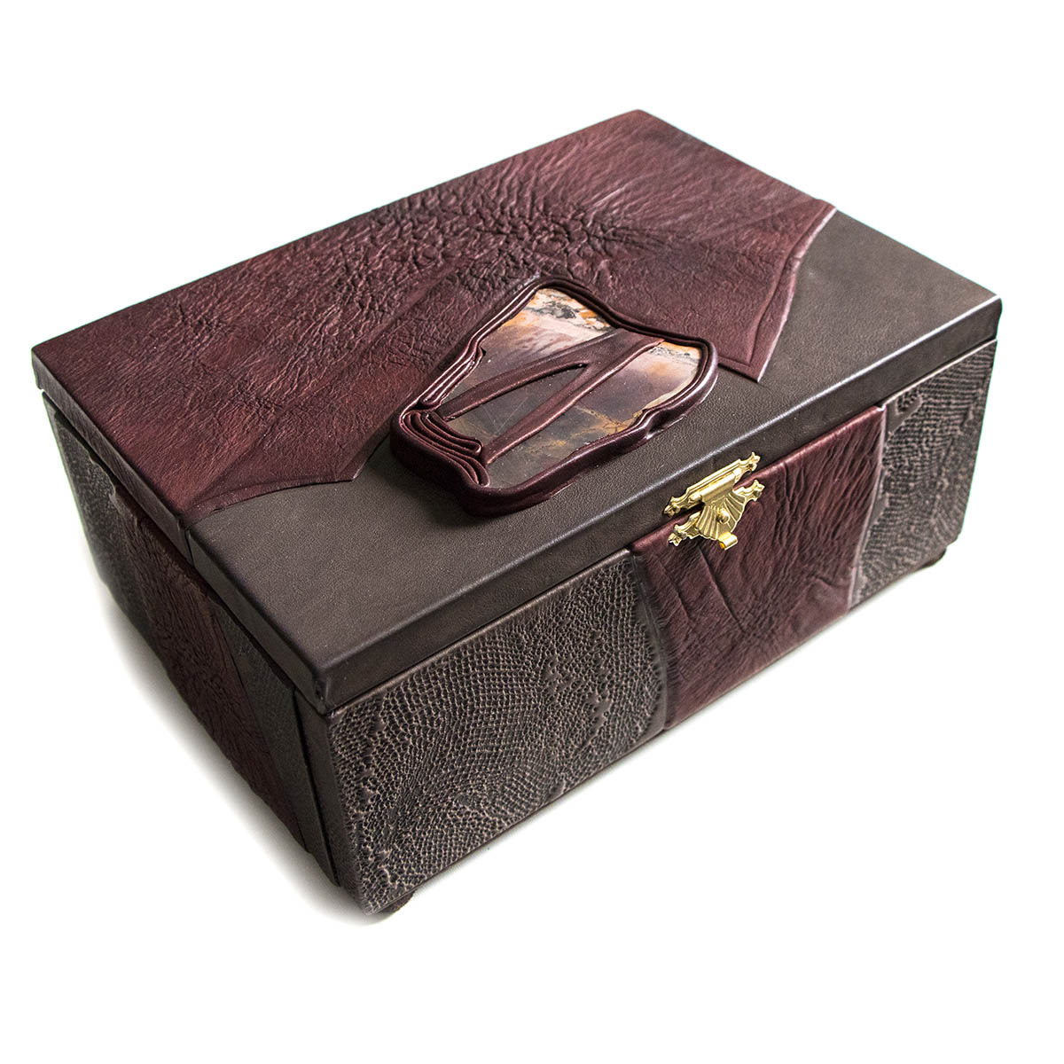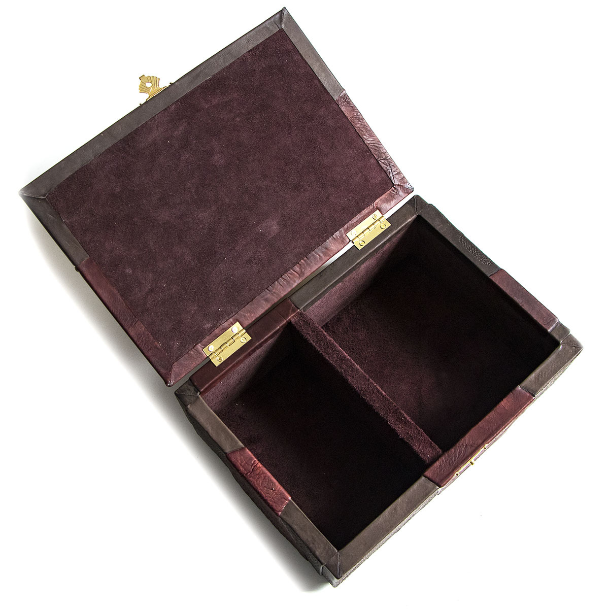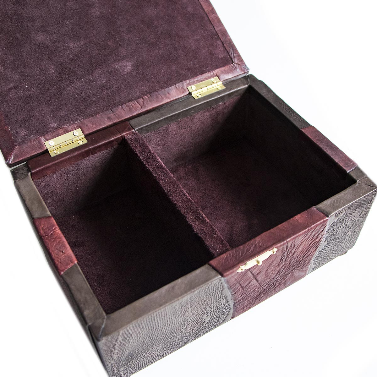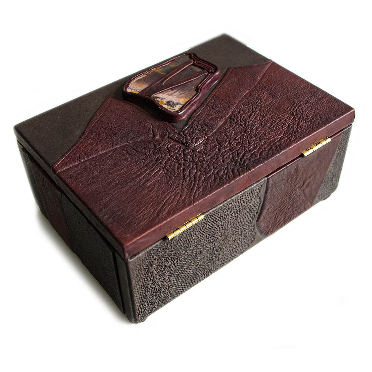 Шкатулка из натуральной кожи ручной работы. Внутри два отделения, 8,2х13,2х6 см, 10,2х13,2х6 см.