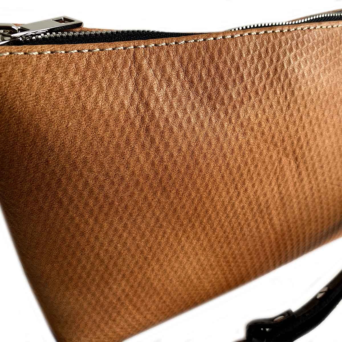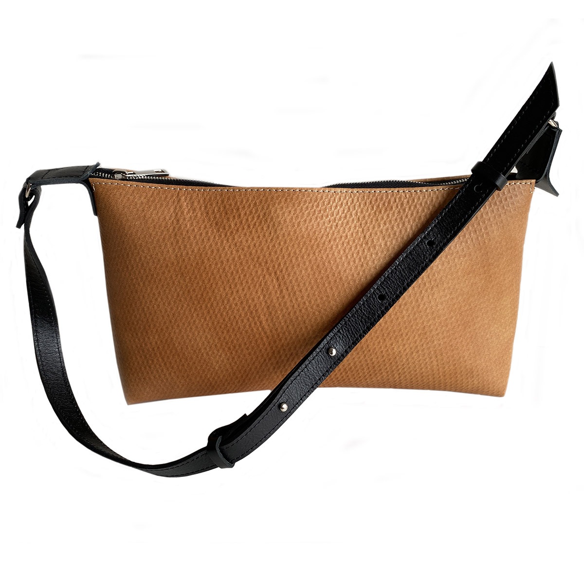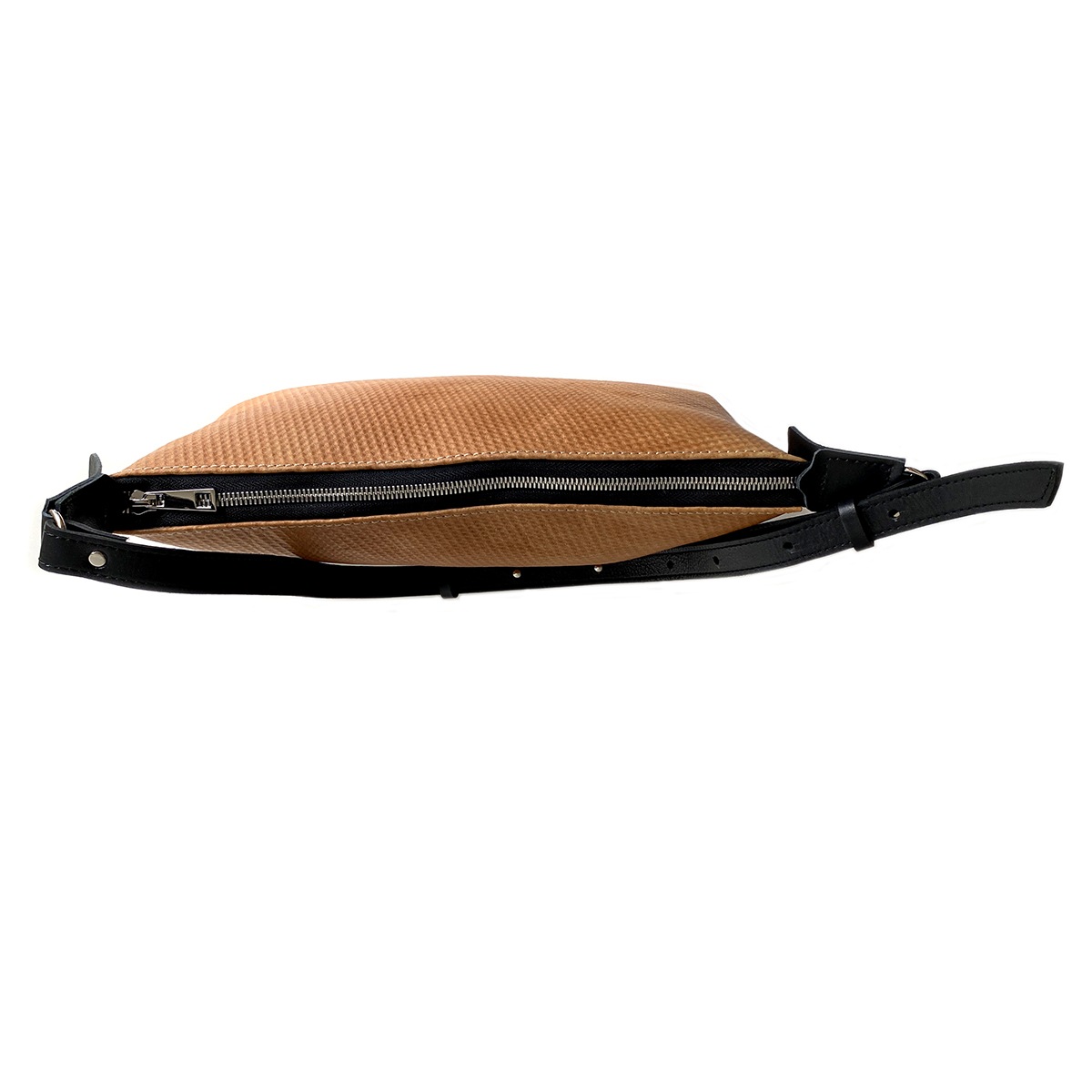 Эта дизайнерская сумка ручной работы выполнена из натуральной тисненой кожи. Главной особенностью этой сумки является игра контрастов. Рыжий цвет кожи , придает ей женственность и романтичность, в то время как черный ремень с металлической фурнитурой добавляет в образ дерзости и смелости.
