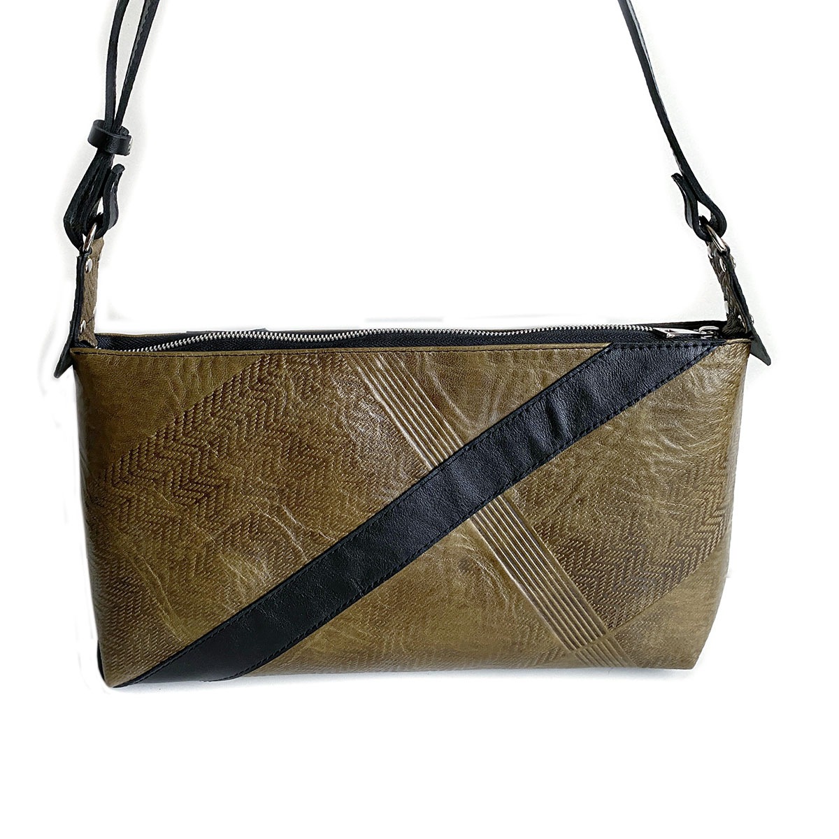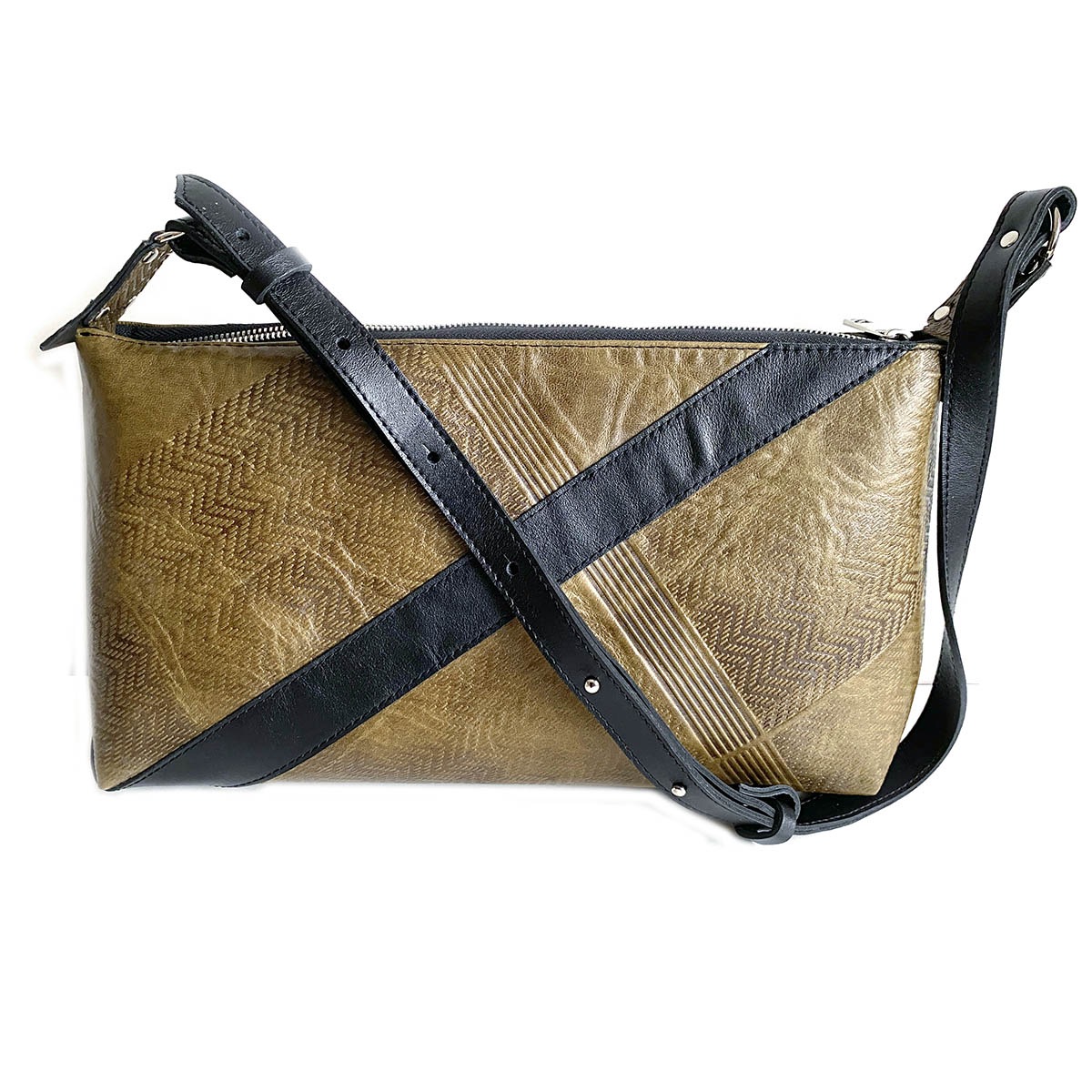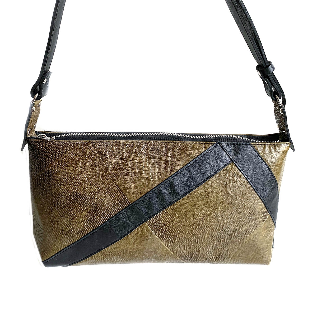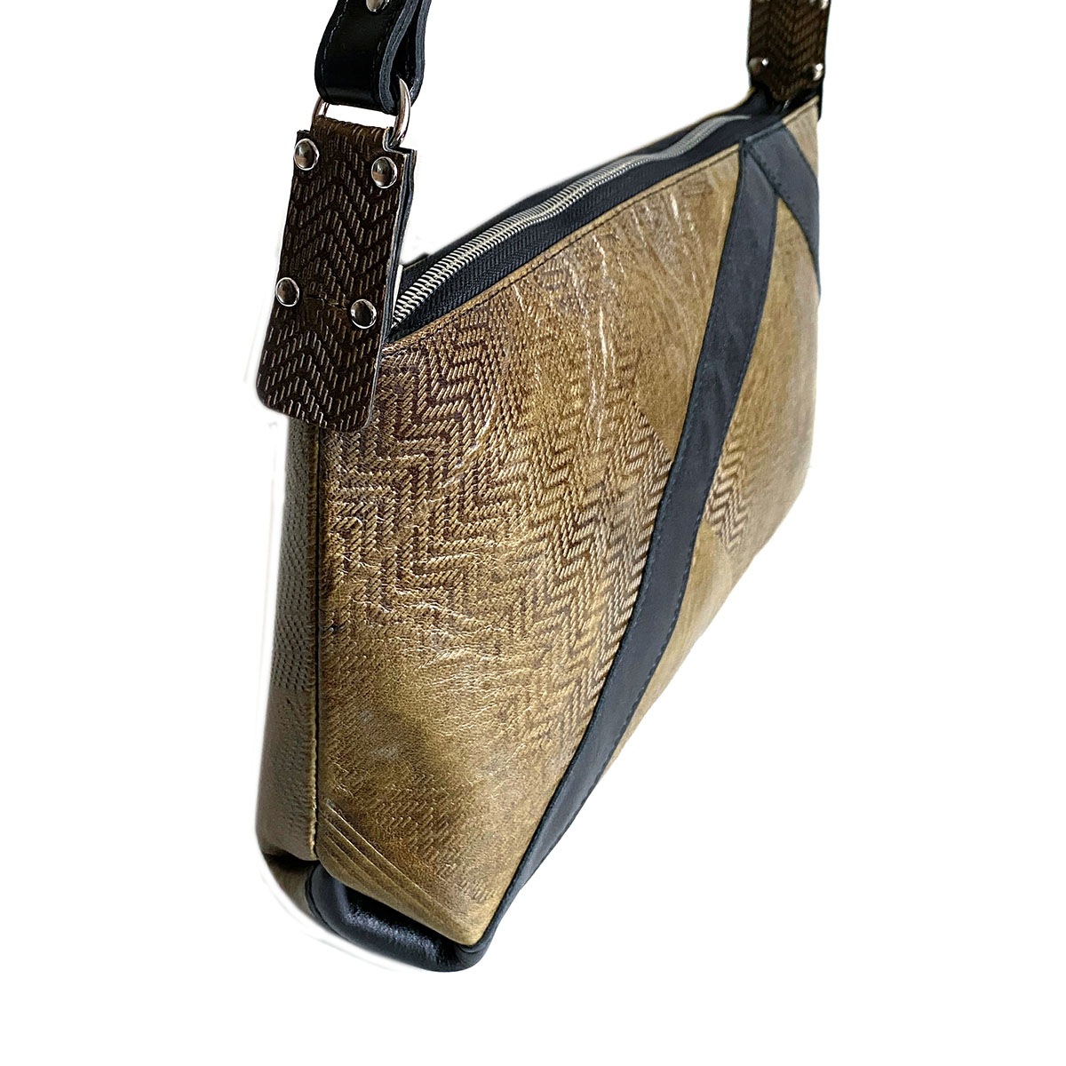 Эта дизайнерская сумка ручной работы выполнена из натуральной кожи Черный ремень с металлической фурнитурой добавляет.